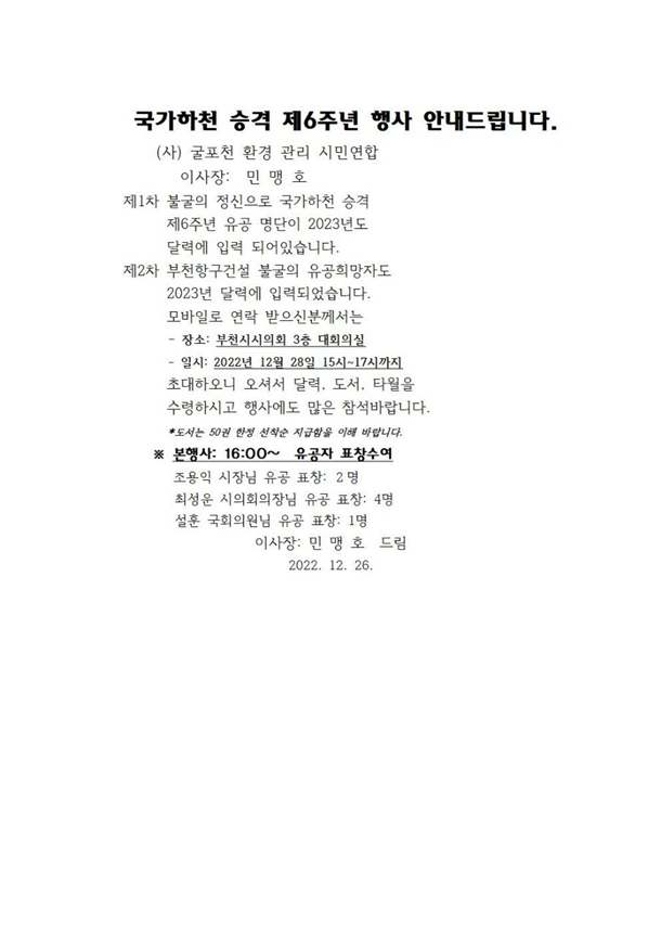 ±¹°¡ÇÏõ ±¼Æ÷õ ½Â°Ý Á¦6ÁÖ³â Çà»ç ¾È³»