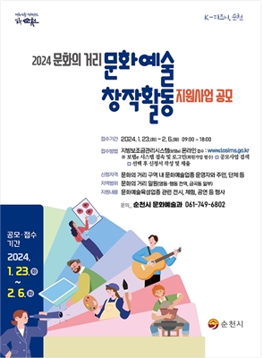¹®È­¿¹¼úÁö¿ø»ç¾÷ Æ÷½ºÅÍ2024³â ¼øÃµ½Ã ¹®È­ÀÇ °Å¸® âÀÛȰµ¿ Áö¿ø »ç¾÷ °ø¸ðÁ¢¼ö ±âÇÑÀº 1¿ù 23ÀϺÎÅÍ 2¿ù 6ÀÏ 18½Ã±îÁöÀ̸ç....¼øÃµ½Ã(½ÃÀå ³ë°ü±Ô)´Â...