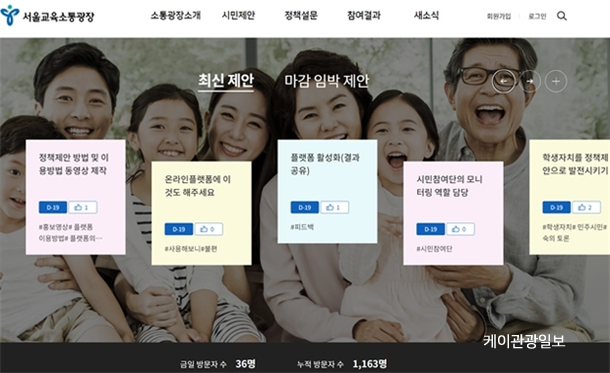 ¡¸¼­¿ï±³À° ¼ÒÅë ±¤À塹Àº ¹ÝÀÀÇü À¥¼­ºñ½º¸¦ Àû¿ëÇÏ¿© PC»Ó¸¸ ¾Æ´Ï¶ó ÅÂºí¸´, ½º¸¶Æ®Æù µî ´Ù¾çÇÑ ±â±â¿¡¼­ ÃÖÀûÈ­µÈ ¼­ºñ½º¸¦ Á¦°øÇϸç, ´©±¸³ª °£´ÜÇÑ ½Ç¸íÀÎÁõ ÈÄ È¸¿ø°¡ÀÔÀ» ÅëÇØ ¡âÀÚÀ¯·Ó°Ô Á¤Ã¥À» Á¦¾ÈÇϰí(½Ã¹ÎÁ¦¾È), ¡âÁ¤Ã¥ ¹æÇâ¿¡ ´ëÇÑ ÀǰßÀ» ´Ù¾çÇÑ ¹æ¹ýÀ¸·Î Ç¥Çö(Á¤Ã¥¼³¹®, °ø°¨, ´ñ±Û µî)ÇÒ ¼ö ÀÖµµ·Ï ±¸¼ºµÇ¾ú´Ù.