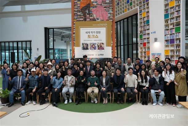 À̳¯ ÁøÇàµÈ ÅäÅ©¼î´Â °í¾ç±¹Á¦²É¹Ú¶÷ȸ Àç´Ü Á¤Èï±³ ´ëÇ¥ÀÌ»çÀÇ °³È¸»ç¸¦ ½ÃÀÛÀ¸·Î ¾çÀ¯Á¤ ¿î¿µº»ºÎÀåÀÇ 2024°í¾ç±¹Á¦²É¹Ú¶÷ȸ ¼³¸í ¹× ¼¼°èÀÛ°¡Á¤¿ø ÇÁ·ÎÁ§Æ®¿¡ ´ëÇÑ ¿î¿µ °èȹ ¼³¸í, 3ÀÎ ÀÛ°¡ÀÇ ÀÛǰ¼¼°è ¹× ±¸»ó¾È ¹ßÇ¥, ÀÛ°¡º° ÁúÀÇÀÀ´ä ¹× ½Ã°ø»ç ¼Ò°³ µî ¾ËÂù ±¸¼ºÀ¸·Î ÁøÇàµÇ¾ú´Ù. ÅäÅ©¼î¸¦ ÇÔ²² ÇÑ ½Ã¹ÎµéÀº ÅäÅ©¼î°¡ ÁøÇàµÈ 3½Ã°£ µ¿¾È ÀÛ°¡µéÀÇ À̾߱⸦ ÁøÁöÇÏ°Ô µè°í Æò¼Ò¿¡ ±Ã±ÝÇß´ø °¡µå´×¿¡ ´ëÇØ Áú¹®À» Çϴ°¡ Çϸé ȲÁöÇØ ÀÛ°¡¿¡°Ô ÆÒ½ÉÀ» º¸À̱⵵ ÇÏ¿´´Ù.