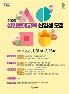 ¼øÃµ½Ã 2023¼ºÀι®Çر³À° ½ÅÀÔ»ý ¸ðÁý È«º¸ Æ÷½ºÅͼøÃµ½Ã, 2023 ¼ºÀι®ÇØ Çб³ ½ÅÀÔ»ý ¸ðÁý²÷ÀÓ¾ø´Â ¹è¿òÀ¸·Î ÀλýÀÇ 2¸·À» ¸ÂÀÌÇØ º¸¼¼¿ä! ¼øÃµ½Ã(½ÃÀå ³ë...