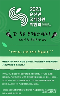 2023¼øÃµ¸¸±¹Á¦Á¤¿ø¹Ú¶÷ȸ D-50 ÇÁ·¹½ºµ¥ÀÌ È«º¸¼øÃµ¸¸±¹Á¦Á¤¿ø¹Ú¶÷ȸÁ¶Á÷À§, ¡®2023¼øÃµ¸¸±¹Á¦Á¤¿ø¹Ú¶÷ȸ¡¯D-50 ¡®ÇÁ·¹½ºµ¥ÀÌ¡¯ ¼­¿ï¿¡¼­ °³ÃÖ³ë°ü±Ô ¼øÃµ½ÃÀå...