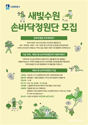 ¼ö¿ø½Ã, µµ½Ã °÷°÷¿¡ ¡®¼Õ¹Ù´ÚÁ¤¿ø¡¯ 1000°³ Á¶¼ºÇÑ´Ù¼ö¿ø½Ã, µµ½Ã °÷°÷¿¡ '¼Õ¹Ù´ÚÁ¤¿ø' 1000°³ Á¶¼ºÇÑ´Ù12¿ù 30ÀϱîÁö ÇÁ·ÎÁ§Æ® ÇÔ²²ÇÒ'»õºû¼ö¿ø ¼Õ¹Ù´Ú...