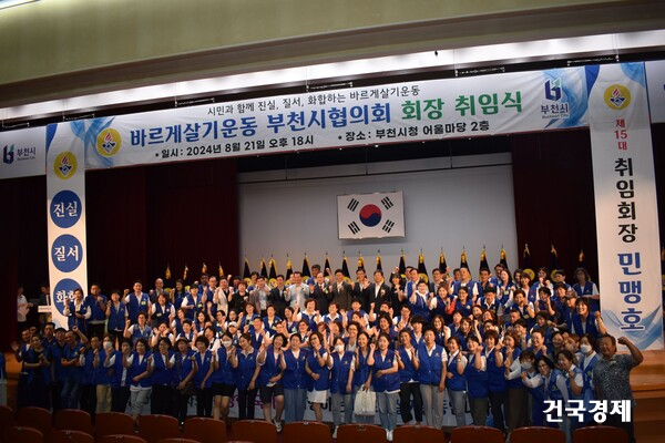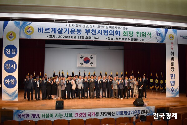 ¹Ù¸£°Ô»ì±â¿îµ¿ÀÇ »õ·Î¿î µµ¾àÀ» ¾Ë¸®´Â ¹Î¸ÍÈ£ Á¦15´ë ºÎõ½ÃÇùÀÇȸÀå ÃëÀÓ½ÄÀÌ 8¿ù 21ÀÏ ¿ÀÈÄ 6½Ã ºÎõ½Ãû 2Ãþ ¾î¿ï¸¶´ç¿¡¼ ¼º´ëÇÏ°Ô °³ÃֵƴÙ.