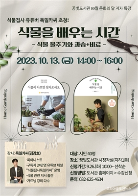 ½Ä¹°À» ¹è¿ì´Â ½Ã°£ ÀúÀÚ ÃÊû °­¿¬ È«º¸¹®²Þºûµµ¼­°ü, 10¿ù ¹®È­ÀÇ ´Þ ¸ÂÀÌ ÀúÀÚ °­¿¬ ¿î¿µ¡®½Ä¹°À» ¹è¿ì´Â ½Ã°£¡¯ À¯Æ©¹ö µ¶ÀÏÄ«¾¾ ÃÊÃ»ÇØ ½Ä¹°Ã³¹æÀü ¹è¿ì´Â ...