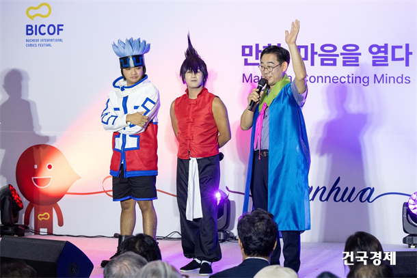 ºÎõ½Ã) 15ÀÏ °æ±â ºÎõ Çѱ¹¸¸È¹Ú¹°°ü °³¸·½Ä ¹«´ë¿¡¼ Çѱ¹¸¸È¿µ»óÁøÈï¿ø ½ÅÁ¾Ã¶ ¿øÀå°ú ¸¸È ¼Ó ij¸¯ÅÍ·Î ºÐÀåÇÑ Àü³âµµ °æ±â±¹Á¦ÄÚ½ºÇÁ·¹Æä½ºÆ¼¹ú ¿ì½ÂÀÚ¿Í ÇÔ²² °³¸·½Ä ÃàÇϸ¦ Çϰí ÀÖ´Ù. 9¿ù 14ÀϺÎÅÍ 17ÀϱîÁö 4Àϰ£ ¡®¸¸È, ¸¶À½À» ¿´Ù¡¯¸¦ ÁÖÁ¦·Î Çѱ¹¸¸È¹Ú¹°°ü ÀÏ´ë¿¡¼ ¿¸°´Ù. Çѱ¹¸¸È¿µ»óÁøÈï¿ø ½ÅÁ¾Ã¶ ¿øÀå°ú ¸¸È ¼Ó ij¸¯ÅÍ·Î ºÐÀåÇÑ ÄÚ½º¾îµéÀÌ ÇÔ²² °³¸·½Ä ÃàÇϸ¦ Çϰí ÀÖ´Ù.