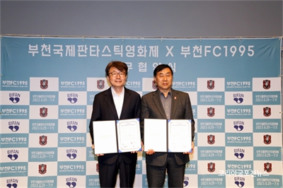 ¡ã BIFAN ½Åö ÁýÇàÀ§¿øÀå(¿ÞÂÊ)°ú ºÎõFC1995 ±è¼º³² ´ÜÀåBIFAN-ºÎõFC1995,ºÎõ½Ã 50ÁÖ³â ¸Â¾Æ »óÈ£ ¹ßÀüÀû Çù·Â À§ÇÑ MOU ü°áº¸À¯ ÀÚ...