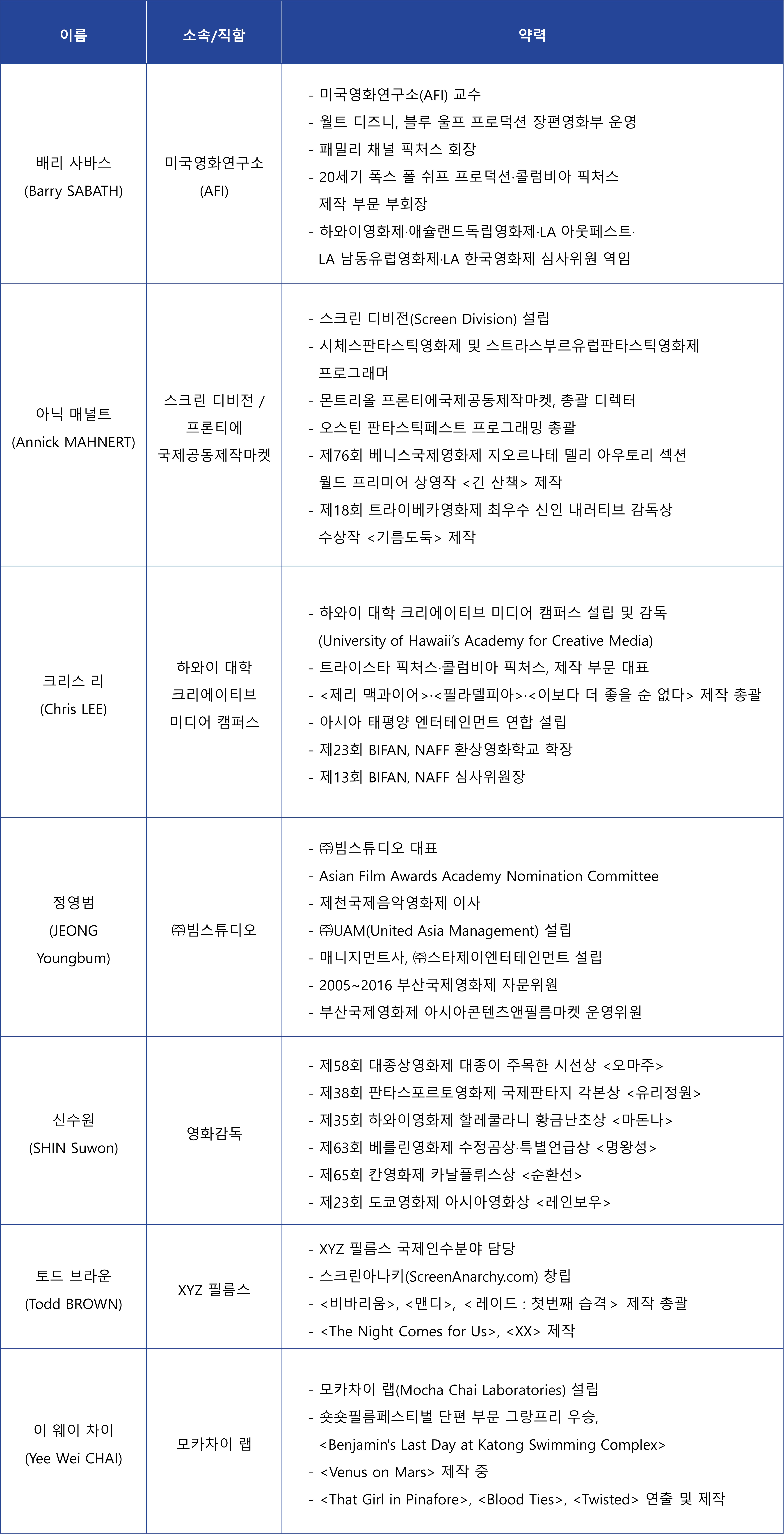 ¿ÃÇØ ȯ»ó¿µÈÇб³¿¡´Â º£¸® »ç¹Ù½º ÇÐÀå°ú ÇÔ²² ¿µÈ »ê¾÷ÀÇ ºÐ¾ßº° Àü¹®°¡·Î ±¸¼ºµÈ ±¹³»¿Ü ¿µÈÀÎÀÌ °»çÁøÀ¸·Î Âü¿©ÇÑ´Ù. Çѱ¹ ¿µÈÀÎÀ¸·Î´Â <¿À¸¶ÁÖ>(2021) <À¯¸®Á¤¿ø>(2017) µî ÀÛǰÀ» ¿¬ÃâÇÑ ½Å¼ö¿ø °¨µ¶°ú A.I µðÁöÅÐ ÈÞ¸Õ Àü¹® ±â¾÷ ¡®(ÁÖ)ºö½ºÆ©µð¿À¡¯ÀÇ Á¤¿µ¹ü ´ëÇ¥°¡ Âü¿©ÇÑ´Ù. ÇØ¿Ü ¿µÈÀÎÀ¸·Î´Â ½Ãü½º¸¦ ºñ·ÔÇØ ´Ù¾çÇÑ ÆÇŸ½ºÆ½¿µÈÁ¦ ÇÁ·Î±×·¡¹ÖÀ» ´ã´çÇÏ´Â ¾Æ´Ð ¸Å³ÎÆ®, <ÀÛÀü¸í ¹ß۸®>(2008) <½´ÆÛ¸Ç ¸®ÅÏÁî>(2006) µîÀ» Á¦ÀÛÇÑ Å©¸®½º ¸®, <·¹À̵å : ù ¹øÂ° ½À°Ý>(2011) <ºñ¹Ù¸®¿ò>(2019) <¸Çµð>(2018)¸¦ Á¦ÀÛÇÑ XYZ Çʸ§½ºÀÇ Åäµå ºê¶ó¿î, µ¿³²¾Æ½Ã¾Æ ÃÖÃÊÀÇ ºÎƼũ µðÁöÅÐ ¿µÈ ¿¬±¸¼Ò ¸ðÄ«Â÷ÀÌ ·¦ ¼³¸³ÀÚ ÀÌ ¿þÀÌ Â÷À̰¡ °ÀǸ¦ ¸Ã´Â´Ù. À̵éÀº ¿ÃÇØ Àü ¼¼°è¿¡¼ ¼±¹ßµÈ 30¸íÀÇ È¯»ó¿µÈÇб³ Âü°¡ÀÚ¸¦ ÁöµµÇÒ ¿¹Á¤ÀÌ´Ù. ¿ÃÇØ·Î 16ȸ¸¦ ¸Â´Â ȯ»ó¿µÈÇб³´Â Àü ¼¼°è ½ÅÁø ¿µÈÀεéÀ» À§ÇÑ À帣¿µÈ ±³À° ¹× ³×Æ®¿öÅ© ÇÁ·Î±×·¥ÀÌ´Ù. ±¹Á¦ÀûÀ¸·Î ÁÖ¸ñ¹Þ´Â ¿µÈÀεéÀÌ °»ç·Î Âü¿©ÇØ ±âȹ°³¹ß ´Ü°èºÎÅÍ ¹è±Þ¡¤¸¶ÄÉÆÃ¿¡ À̸£±â±îÁö ¿µÈ Á¦ÀÛ Àü¹ÝÀ» ¾Æ¿ì¸£´Â °¿¬°ú ¸¶½ºÅÍŬ·¡½º¸¦ ÁøÇàÇÑ´Ù. Âü°¡ÀÚµéÀº º»ÀÎÀÇ ÇÁ·ÎÁ§Æ®¸¦ ¹ßÇ¥ÇÏ°í ¸àÅ丵À» ¹ÞÀ» ¼ö ÀÖ´Ù. ´Ù¾çÇÑ ±¹°¡¿¡¼ ¿Â °»çÁø¡¤Âü°¡ÀÚ°£ÀÇ ³×Æ®¿öÅ©¸¦ µµ¸ðÇÏ´Â ÀÚ¸®µµ ¸¶·ÃÇÑ´Ù.