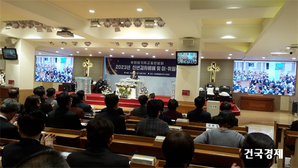 À̳¯, ºÎõ½Ã±âµ¶±³ÃÑ¿¬ÇÕȸ(ºÎ±âÃÑ) 2023³â ½Å³â°¨»ç¿¹¹è ¹× ÃÑȸÀå ÀÌ¡¤ÃëÀӽĿ¡´Â Á¶¿ëÀÍ ºÎõ½ÃÀå, ±è»óÈñ ±¹È¸ÀÇ¿ø µîÀÇ Ãà»ç, ±¹¹ÎÀÇÈû ÀÌÀ½Àç. ÃÖȯ½Ä. ¼¿µ¼® ºÎõ¿ø¹Ì°©.º´.À» ´çÇùÀ§¿øÀå, ºÎõ½ÃÀÇ¿ø, ±è¿µÁø °æ±âµµÁ¾±³ÁöµµÀÚÇùÀÇȸÀå, ¼øº¹À½Áßµ¿±³È¸ ±è°æ¹® ¸ñ»ç, ±è¿ø±³ ÂüÁÁÀº±³È¸ ¸ñ»ç(º»È¸ Á¦8´ë ÀÌ»çÀå)µî ¸¹Àº ±³´Ü ÁöµµÀÚ¿Í ¼ºµµ µîÀÌ Âü¼®Çß´Ù.