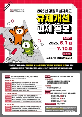 2025³â °­¿øÆ¯º°ÀÚÄ¡µµ ±ÔÁ¦°³¼± °úÁ¦ °ø¸ð ÃßÁø6¿ù 1ÀÏ(ÀÏ)ºÎÅÍ 7¿ù 10ÀÏ(¸ñ)±îÁö Àü ±¹¹Î ´ë»ó ±ÔÁ¦°³¼± °úÁ¦ ¹ß±¼ °­¿øÆ¯º°ÀÚÄ¡µµ(µµÁö»ç ±èÁøÅÂ)´Â ...