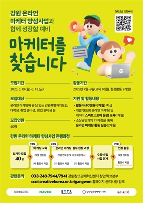 2025³â °­¿ø ¿Â¶óÀθ¶ÄÉÅÍ Àη¾缺 ±³À° ¼ö·á½Ä °³ÃÖ»ó¹Ý±â(9±â) 40¸í ¼ö·á / ÇϹݱâ(10±â) Âü¿©ÀÚ(¸¶ÄÉÅÍ¡¤¼Ò»ó°øÀÎ) ¸ðÁý°­¿øÆ¯º°ÀÚÄ¡µµ(µµÁö»ç ±èÁøÅÂ...
