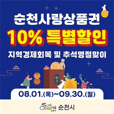 ¼øÃµ½Ã, ¼øÃµ»ç¶û»óǰ±Ç 10% Ưº°ÇÒÀÎÆÇ¸Å- Áö¿ª°æÁ¦ Ȱ¼ºÈ­ ¹× ȸº¹À» À§ÇØ 8¿ù 1ÀϺÎÅÍ Æ¯º°ÇÒÀÎÆÇ¸Å - ¼øÃµ½Ã(½ÃÀå ³ë°ü±Ô)´Â ¿À´Â 8¿ù 1ÀϺÎÅÍ 9¿ù ...