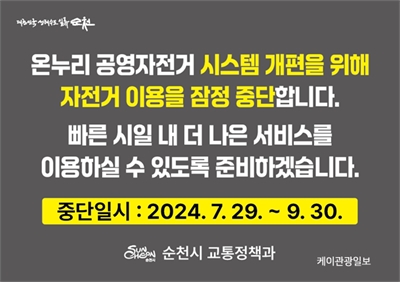 ¼øÃµ½Ã °ø¿µÀÚÀü°Å ¡®¿Â´©¸®¡¯ ´õ Æí¸®ÇÏ°Ô ÀÌ¿ëÇÒ ¼ö ÀÖ°Ô µË´Ï´Ù!¡¦2°³¿ù°£ ÇѽÃÀû ¿î¿µ Áß´ÜQRÄڵ带 ÀÌ¿ëÇÑ ÀÚÀü°Å ´ë¿©¹æ½ÄÀ» ÅëÇÑ ÀýÂ÷ °£¼ÒÈ­, ½Ã¹Î ÆíÀÇ...