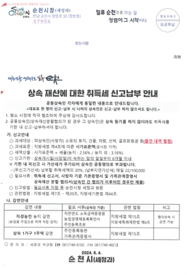¼øÃµ½Ã, »ó¼Ó Ãëµæ¼¼ ½Å°í¡¤³³ºÎ ¾È³»·Î »ó¼ÓÀÎ °¡»ê¼¼(20%) ºÎ´ã ´ú¾îÁà... ¼øÃµ½Ã(½ÃÀå ³ë°ü±Ô)´Â »ó¼Ó ºÎµ¿»ê¿¡ ´ëÇÑ Ãëµæ¼¼ ½Å°í¡¤³³ºÎ ¾È³»·Î »ó¼ÓÀÎÀÌ...
