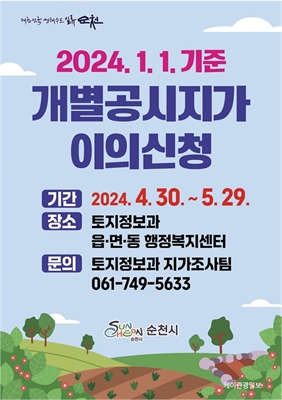 ¼øÃµ½Ã, °³º°°ø½ÃÁö°¡ °áÁ¤¡¤°ø½Ã ¹× ÀÌÀǽÅû Á¢¼ö5¿ù 29ÀϱîÁö °³º°°ø½ÃÁö°¡ ¿­¶÷ ¹× ÀÌÀǽÅû ¼øÃµ½Ã(½ÃÀå ³ë°ü±Ô)´Â 2024³â 1¿ù 1ÀÏ ±âÁØ °³º°°ø½ÃÁö°¡...
