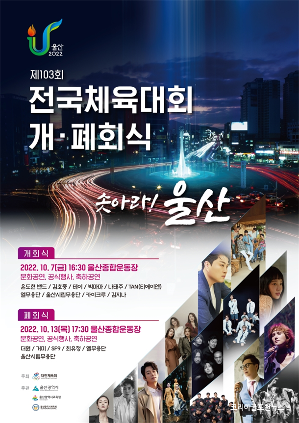 ¿ï»ê½Ã´Â 2022³â 10¿ù 7ÀÏ ¿ÀÈÄ 5½Ã ¿ï»êÁ¾ÇտÀå¿¡¼ ½Ã¹Î µî 1¸¸ 5,000¿© ¸íÀÌ Âü¼®ÇÑ °¡¿îµ¥ ¡®Á¦103ȸ Àü±¹Ã¼À°´ëȸ °³È¸½Ä¡¯ÀÌ °³ÃÖµÈ´Ù°í ¹àÇû´Ù.