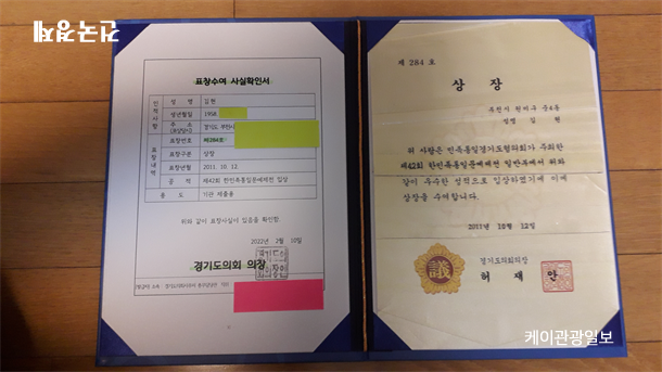Çö °Ç±¹°æÁ¦(´ç½Ã/°Ç±¹ÀϺ¸ °æÀνź¸) ±èÇö ¹ßÇàÀÎ °â ´ëÇ¥±âÀÚ´Â ¿©Å¸ ¼ö»óÀÚ¿Í ÇÔ²² 2011³â 10¿ù 12ÀÏ ¿ÀÈÄ 2½Ã °æ±âÁß¼Ò±â¾÷Á¾ÇÕÁö¿ø¼¾ÅÍ¿¡¼ ¿¸° "Á¦42ȸ ÇѹÎÁ·ÅëÀϹ®¿¹Á¦Àü"¿¡¼ ÀÌÀçÀ± (»ç)¹ÎÁ·ÅëÀÏÇùȸ ÀÇÀå µî ¸¹Àº ³»ºó°ú ÃàÇϰ´ÀÌ Âü¼®ÇÑ °¡¿îµ¥ ½Ã(¸¸³² ¿Ü 1Æí) ÀϹݺΠ½ÃºÎ¹®¿¡¼ ÀÔ»óÇÏ¿© ¿µ¿¹ÀÇ °æ±âµµÀÇȸ(ÀÇÀå ÇãÀç¾È)ÀÇÀå»ó(Á¦284È£)À» ¼ö»óÇß´Ù.