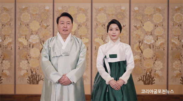 À±¼®¿­ ´ëÅë·É°ú ±è°ÇÈñ ¿©»ç´Â 2023³â 1¿ù 21ÀÏ ¿ÀÀü 6½Ã À¯Æ©ºê °ø½Ä ä³ÎÀ» ÅëÇØ ¼³ ÀÎ»ç ¸Þ½ÃÁö¸¦ ÀüÇß´Ù. À± ´ëÅë·ÉÀº ¿¶Àº ȸ»öÀÇ µÎ·ç¸¶±â¸¦, ±è ¿©»ç´Â Èò»ö Àú°í¸®¿¡ £Àº ³ì»ö Ä¡¸¶¸¦ °®Ãá ÇѺ¹ Â÷¸²À¸·Î ±¹¹Îµé¿¡°Ô ¼³ ¸íÀý Àλ縦 Çß´Ù.