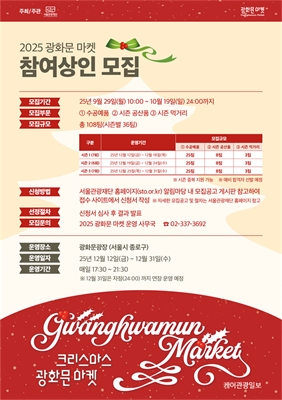 ¼­¿ï µµ½É¿¡¼­ ¸¸³ª´Â Å©¸®½º¸¶½º ¸¶À», ¡¸2025 ±¤È­¹® ¸¶ÄÏ¡¹Âü¿©»óÀÎ °ø°³ ¸ðÁý ½ÃÀÛ!2025 ±¤È­¹® ¸¶ÄÏ, 12¿ù 12ÀϺÎÅÍ ±¤È­¹®±¤Àå¿¡¼­ ÃÑ 20Àϰ£ ...