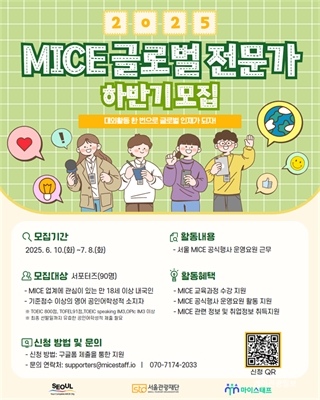 ¼­¿ï MICE Çà»ç ÇöÀå¿¡´Â ¿ì¸®°¡ ÀÖ¾î¿ä! 2025 ÇϹݱâ MICE ±Û·Î¹ú Àü¹®°¡ ¸ðÁý¼­¿ïÇü MICE ¹Ì·¡ ÀÎÀç, ¼­¿ï MICE ¼­Æ÷ÅÍÁî ÇϹݱ⠾à 90¸í...