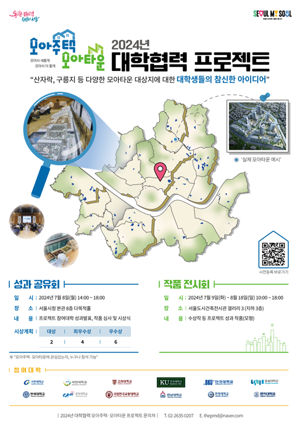 ¼¿ï½Ã´Â 7¿ù 8ÀÏ(¿ù) ¼¿ï½Ãû ½Åû»ç(8Ãþ ´Ù¸ñÀûȦ)¿¡¼ <¡¯24³â ¸ð¾ÆÁÖÅÃ・¸ð¾ÆÅ¸¿î ´ëÇÐÇù·Â ÇÁ·ÎÁ§Æ® ¼º°ú°øÀ¯È¸>¸¦ °³ÃÖÇÏ°í ¼ö»óÀÛÀ» Æ÷ÇÔÇÑ ¿ì¼ö ÀÛǰÀ» 7¿ù 9ÀÏ(È)ºÎÅÍ 8¿ù 18ÀÏ(ÀÏ)±îÁö ¼¿ïµµ½Ã°ÇÃàÀü½Ã°ü¿¡ Àü½ÃÇÑ´Ù°í ¹àÇû´Ù.