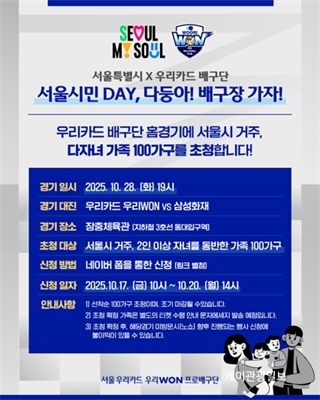¼­¿ï½Ã, ¡®¼­¿ï ½Ã¹ÎÀÇ ³¯ ±â³ä¡¯ ´ÙÀÚ³à 100°¡Á· ¹è±¸°æ±â ¹«·á ÃÊû10.28(È­) ½Ã ¿¬°í ±¸´Ü ¡®¿ì¸®Ä«µå¹è±¸´Ü¡¯ Ȩ°æ±â¿¡ ´ÙÀÚ³à °¡Á· ÃÊû ¡®¼­¿ï½Ã¹Î ...