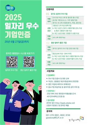 °æ±âµµ, ÀÏÀÚ¸® ¿ì¼ö±â¾÷¡¤Ã»³â ÀÏÇϱâ ÁÁÀº ±â¾÷ ÀÎÁõ ±â¾÷ ¸ðÁý¡Û 6¿ù27ÀϱîÁö Á¢¼ö...Áß¼Ò±â¾÷À°¼ºÀÚ±Ý °¡Á¡, Áö¹æ¼¼ ¼¼¹«Á¶»ç À¯¿¹ µî 29°¡Áö ÇýÅðæ±âµµ...