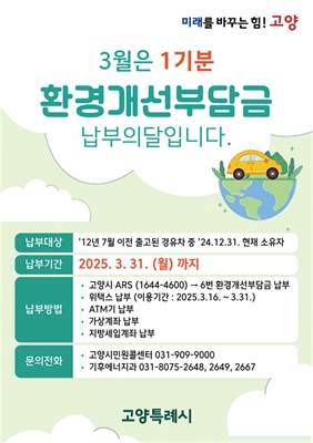 °í¾ç½Ã, 3¿ùÀº ȯ°æ°³¼±ºÎ´ã±Ý ³³ºÎÀÇ ´Þ