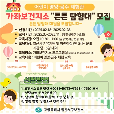 °í¾ç½Ã Àϻ꼭±¸º¸°Ç¼Ò, ¾î¸°ÀÌ ¿µ¾ç¡¤±ÝÁÖ Ã¼Çè±³½Ç¡®Æ°Æ° ŽÇè´ë¡¯¿î¿µÀ¯Ä¡¿ø¡¤¾î¸°ÀÌÁý Àç¿ø»ý 5~6¼¼ ´ë»ó¡¦2¿ù 28ÀϱîÁö Á¢¼ö °í¾çƯ·Ê½Ã(½ÃÀå À̵¿È¯) Àϻ꼭...