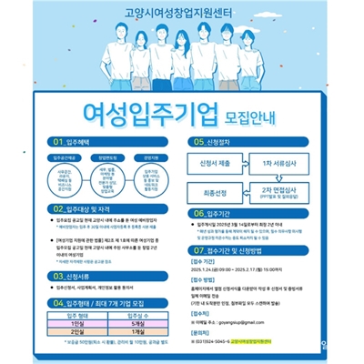 °í¾ç½Ã ¿©¼ºÃ¢¾÷Áö¿ø¼¾ÅÍ, ½Å±Ô ÀÔÁÖ±â¾÷ ¸ðÁý2¿ù 17ÀÏ ¿ÀÈÄ 3½Ã±îÁö À̸ÞÀÏ Á¢¼ö¡¦ÃÖ´ë 2³â±îÁö ÀÔÁÖ °í¾çƯ·Ê½Ã(½ÃÀå À̵¿È¯) ¿©¼ºÃ¢¾÷Áö¿ø¼¾ÅÍ´Â ¿ì¼öÇÑ »ç¾÷...