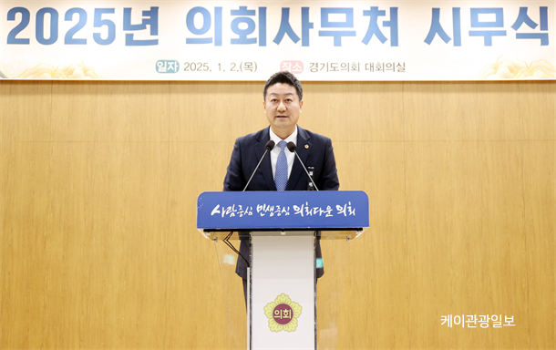 ±èÁø°æ °æ±âµµÀÇȸ ÀÇÀå(´õ¹ÎÁÖ, ½ÃÈï3)ÀÌ 2ÀÏ ¡®2025³â ÀÇȸ»ç¹«Ã³ Á÷¿ø ½Ã¹«½Ä¡¯¿¡¼ ¡®¹ßʽÂÁø ź·ÂÀû ¿î¿ë¡¯ µî ÀÇȸ ¿î¿µ¿¡ ´ëÇÑ »õÇØ ºñÀü°ú Æ÷ºÎ¸¦ ¹àÇû´Ù.
