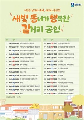 ¼ö¿ø »õºûµ¿Çà±æ ¹ö½ºÅ·, 11¿ù 3ÀϱîÁö ¼ö¿ø °÷°÷¿¡¼­ ¿­·Á10¿ù 24~27ÀÏ, 11¿ù 2~3ÀÏ Áö¿ª °ø¿¬°¡µéÀÌ ´Ùä·Î¿î °ø¿¬ ¼±º¸¿© ¼ö¿ø½Ã(½ÃÀå ÀÌÀçÁØ)°¡...