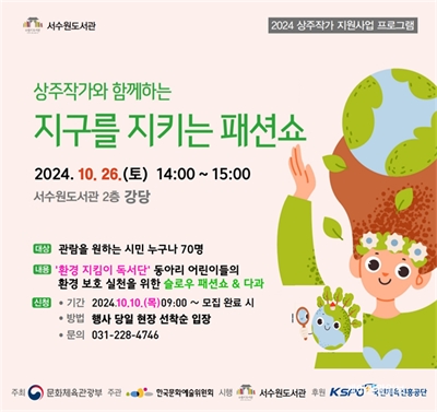¼­¼ö¿øµµ¼­°ü, ȯ°æ ÁöÅ´ÀÌ µ¶¼­´Ü ¾î¸°À̵éÀÇ ¡®Áö±¸¸¦ ÁöŰ´Â ÆÐ¼Ç¼î¡¯ °³Ã־ÀÌµé ½½¿ì ÆÐ¼Ç(Áö¼Ó°¡´ÉÇÑ ¿Ê) ÀÔ°í, ȯ°æ µµ¼­ ³¶µ¶ ¼­¼ö¿øµµ¼­°üÀÌ 10¿ù 2...