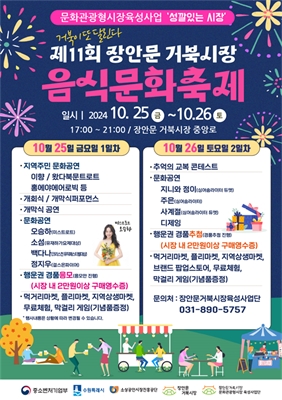 ¼ö¿ø Àå¾È¹®°ÅºÏ½ÃÀå, ¡®Á¦11ȸ À½½Ä¹®È­ÃàÁ¦¡¯ 25~26ÀÏ °³ÃÖ´Ù¾çÇÑ ¹®È­°ø¿¬, ¸Ô°Å¸®¡¤Ã¼Çè ºÎ½º, °æÇ° Ãß÷ µî ÁøÇà ¼ö¿ø Àå¾È¹®°ÅºÏ½ÃÀåÀÌ 25¡¤26ÀÏ ÀÌ...