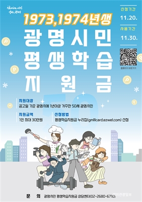73¡¤74³â»ý ±¤¸í½Ã¹Î 30¸¸ ¿ø ì°Ü°¡¼¼¿ä¡¦Æò»ýÇнÀÁö¿ø±Ý ½Åû 11¿ù 20ÀϱîÁö±¤¸í½Ã 1³â ÀÌ»ó °ÅÁÖÇÑ 1973¡¤1974³â»ý, ¿À´Â 11¿ù 20ÀϱîÁö Æò»ý...
