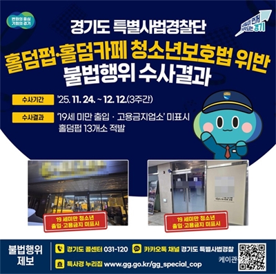 °æ±âµµ Ư»ç°æ, ¡®Ã»¼Ò³â ÃâÀÔ±ÝÁö ¹ÌÇ¥½Ã¡¯ µµ³» Ȧ´ýÆà¡¤Ä«Æä 13°Ç Àû¹ß°æ±âµµ, 11¿ù 24ÀϺÎÅÍ 12¿ù 12ÀϱîÁö 3ÁÖ°£ µµ³» Ȧ´ýÆà, Ȧ´ýÄ«Æä ´ë»ó û¼Ò...