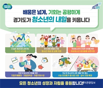 ´õ ³ÐÀº ¼¼»óÀ» û¼Ò³â¿¡°Ô. Çб³¡¤°¡Á¤ ¹Û û¼Ò³â ÀÚ¸³µµ Áö¿ø2026³â »õÇØ, °æ±âµµ¹ÎÀ̶ó¸é ²À ¾Ë¾ÆµÖ¾ß ÇÒ °æ±âµµ Á¤Ã¥..û¼Ò³âÆí°æÁ¦Àû ¿©°ÇÀÌ ¾î·Á¿î û¼Ò...