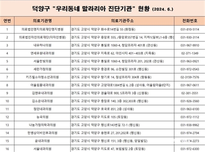 °í¾ç½Ã ´ö¾ç±¸º¸°Ç¼Ò, ¸»¶ó¸®¾Æ Áø´Ü º´ÀÇ¿ø ÁöÁ¤ÁöÁ¤ º´¿ø¿¡ ¸»¶ó¸®¾Æ ½Å¼Ó Áø´ÜŰƮ ¹èºÎ...°¨¿° ¿©ºÎ ¹Ù·Î È®ÀÎ °¡´É °í¾çƯ·Ê½Ã(½ÃÀå À̵¿È¯) ´ö¾ç±¸º¸°Ç¼Ò´Â...
