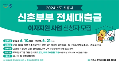 ½ÅÈ¥ºÎºÎÀü¼¼´ëÃâ±Ý ÀÌÀÚ Áö¿ø, ÃÖ´ë 100¸¸ ¿ø ½ÃÈï½Ã(½ÃÀå ÀÓº´ÅÃ)´Â ¿ÃÇØµµ ½ÅÈ¥ºÎºÎ °¡±¸¸¦ ´ë»óÀ¸·Î ¡®½ÅÈ¥ºÎºÎ Àü¼¼´ëÃâ±Ý ÀÌÀÚÁö¿ø »ç¾÷¡¯À» ½ÃÇàÇÑ´Ù°í ¹à...