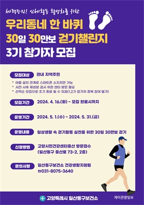 °í¾ç½Ã Àϻ굿±¸º¸°Ç¼Ò ¡®30ÀÏ 30¸¸º¸ °È±â縰Áö¡¯ 3±â Âü°¡ÀÚ ¸ðÁý°í¾ç½Ã¹Î°Ç°­¼¾ÅÍÁß»ê°ú ÇÔ²²ÇØ¡¦4¿ù 16ÀϺÎÅÍ Á¢¼ö °í¾çƯ·Ê½Ã(½ÃÀå À̵¿È¯) Àϻ굿±¸º¸°Ç¼Ò...