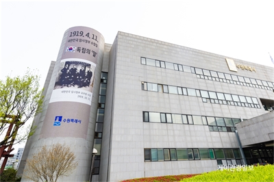 ¼ö¿ø½Ã, ½Ãû»ç ¿Üº®¿¡ ¡®Á¦105Áֳ⠴ëÇѹα¹ ÀÓ½ÃÁ¤ºÎ ¼ö¸³¡¯ ±â³ä Çö¼ö¸· °Ô½ÃÀÌÀçÁØ ¼ö¿ø½ÃÀå, ¡°3.1¿îµ¿À» ¹Ø°Å¸§À¸·Î ź»ýÇÑ ´ëÇѹα¹ÀÓ½ÃÁ¤ºÎ´Â ¹ÎÁÖ°øÈ­±¹...