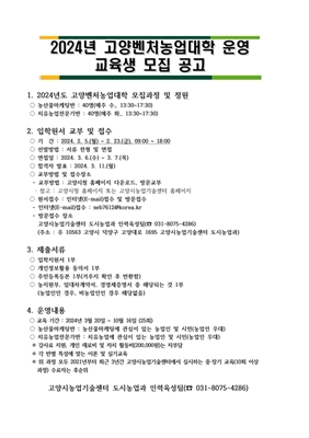 °í¾ç½Ã³ó¾÷±â¼ú¼¾ÅÍ, 2024³â °í¾çº¥Ã³³ó¾÷´ëÇÐ ±³À°»ý ¸ðÁý