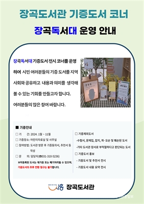 ½ÃÈï½Ã Àå°îµµ¼­°ü, ½Ã¹Î ±âÁõµµ¼­ Àü½Ã ÄÚ³Ê ¿î¿µ ½ÃÈï½Ã(½ÃÀå ÀÓº´ÅÃ) Àå°îµµ¼­°üÀº 2024³â ½Ã¹ÎµéÀÌ ±âÁõÇÑ µµ¼­¸¦ ¼Ò°³Çϰí, ³ª´®ÀÇ Àǹ̸¦ µÇ»õ±â´Â ±â...