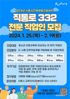 û¼Ò³â Áø·Î Ž»ö µµ¿ï ¡®Á÷¾÷À¸·Î ÅëÇÏ´Â Áø·Î 332¡¯...Àü¹® Á÷¾÷ÀÎ ¸ðÁý ½ÃÈï½Ã(ÀÓº´Åà ½ÃÀå)´Â °ü³» û¼Ò³âµéÀÌ ¼ÒÁú°ú Àû¼ºÀ» ¹ÙÅÁÀ¸·Î Á÷¾÷ ¼¼°è¸¦ ÀÌ...
