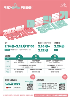 ¼ö¿øµµ½ÃÀç´Ü, ¡®¸¶À»¸¸µé±â ÁÖ¹ÎÁ¦¾È °ø¸ð»ç¾÷¡¯ÃßÁøÂü¿© Àοø ¹× ÃßÁø °æÇè¿¡ µû¶ó 3°³ À¯ÇüÀ¸·Î ³ª´² Áö¿ø ¿¹Á¤ ¼ö¿øµµ½ÃÀç´Ü ¸¶À»ÀÚÄ¡Áö¿ø¼¾ÅͰ¡ ÁÖ¹ÎÁÖµµÇü ¸¶À»...