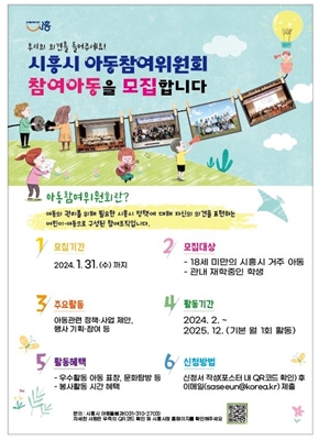 ¡°¾Æµ¿ÀÇ ÀǰßÀ» µé¾îÁÖ¼¼¿ä¡± 2024³â ¾Æµ¿Âü¿©À§¿øÈ¸ Âü¿© ¾Æµ¿ ¸ðÁý½ÃÈï½Ã(½ÃÀå ÀÓº´ÅÃ)°¡ ¾Æµ¿ÀÇ ±Ç¸® ¹ßÀü°ú Á¤Ã¥ Âü¿© Ȱ¼ºÈ­¸¦ À§ÇØ ¿À´Â 1¿ù 31ÀϱîÁö...