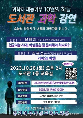 °æ±â¿©ÁÖ°¡³²±³À°µµ¼­°ü, 28ÀÏ '10¿ùÀÇ ÇÏ´Ã' °úÇÐ °­¿¬ °³ÃÖ°æ±â¿©ÁÖ°¡³²±³À°µµ¼­°ü,28ÀÏ¡®10¿ùÀÇ ÇϴᯰúÇÐ °­¿¬ ¡°¿À´ÃÀÇ °úÇÐÀÚ°¡ ³»ÀÏÀÇ °úÇÐÀÚ¸¦ ¸¸³ª´Ù...