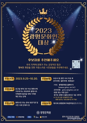 ±¤¸í¹®È­¿ø, 2023³â ±¤¸í¹®È­Àδë»ó Èĺ¸ 10¿ù 20ÀϱîÁö Ãßõ¹Þ¾Æ