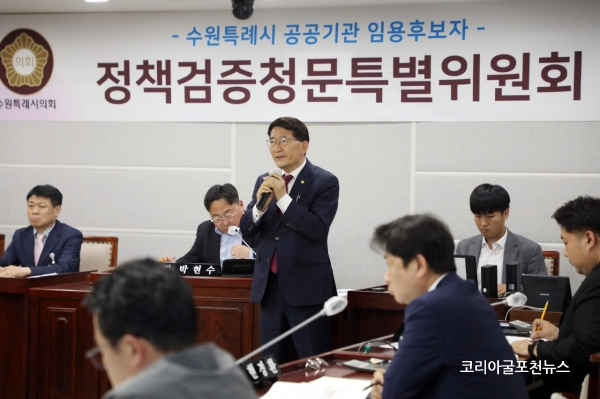 ¼ö¿øÆ¯·Ê½ÃÀÇȸ(ÀÇÀå ±è±âÁ¤)´Â 4¿ù 27ÀÏ(¸ñ)ÀÏ ±è¼ºÁø ¼ö¿ø½ÃÁ¤¿¬±¸¿ø ¿øÀå Èĺ¸ÀÚ¿¡ ´ëÇÑ Á¤Ã¥°ËÁõû¹®Æ¯º°À§¿øÈ¸¸¦ ½Ç½ÃÇß´Ù.