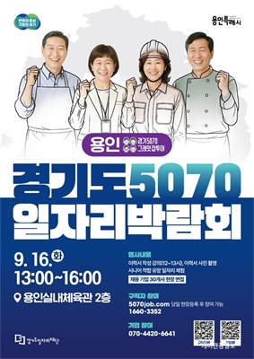 ¡®°æ±âµµ 5070 ÀÏÀÚ¸®¹Ú¶÷ȸ ¿ëÀο¡¼­ ¸¸³ª¿ä... 60¿© °³ ±â¾÷ Âü¿©9¿ù 16ÀÏ, ¿ëÀνdz»Ã¼À°°ü¿¡¼­ 5070¼¼´ë¸¦ À§ÇÑ Ã¤¿ë¹Ú¶÷ȸ °³ÃÖ50~70´ë ±¸Á÷ÀÚ...